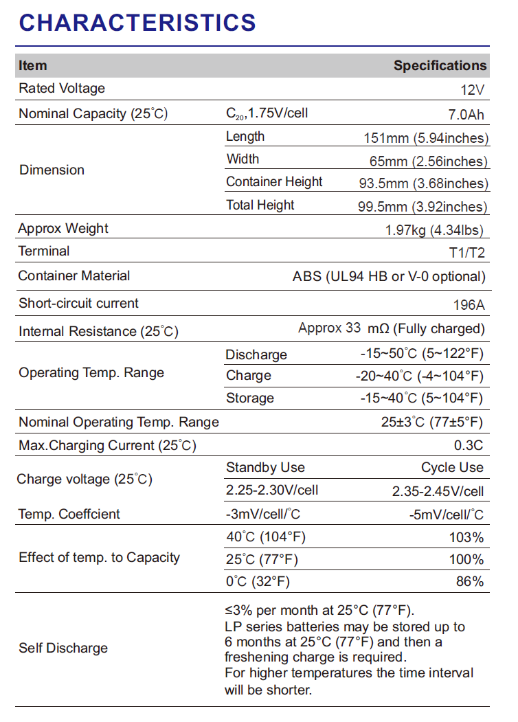 - Capacidad nominal: 7Ah (a 20 horas)