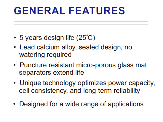 - Hasta 5 años de vida útil en uso flotante (standby)
